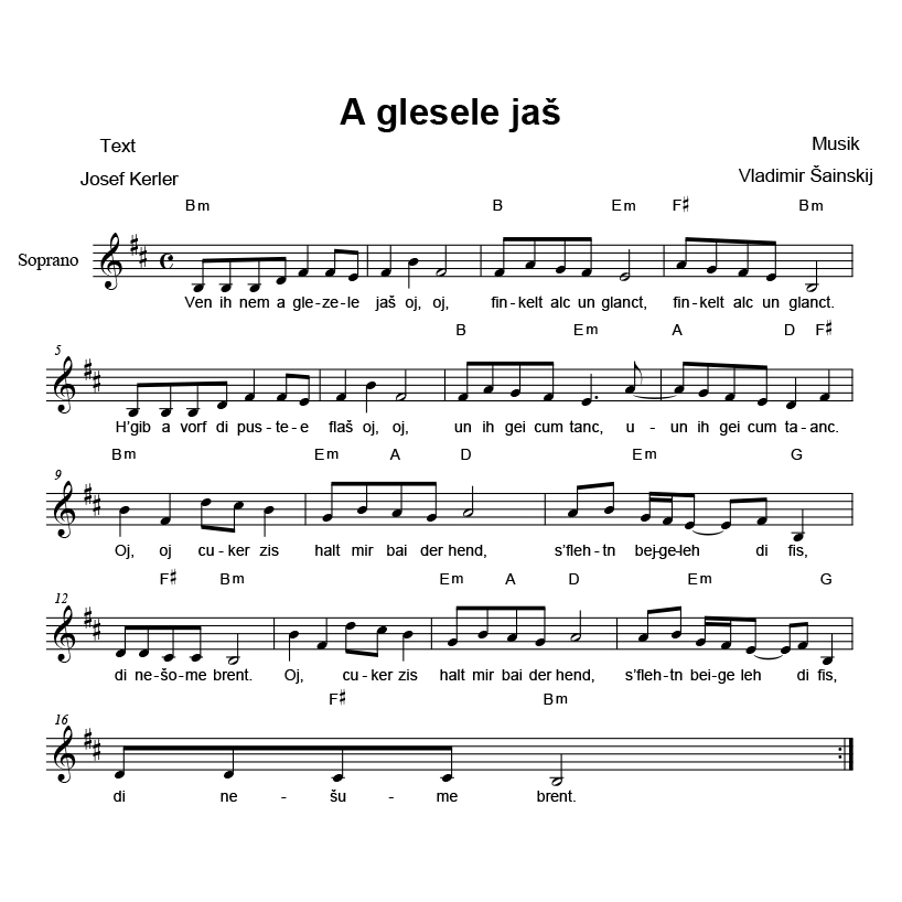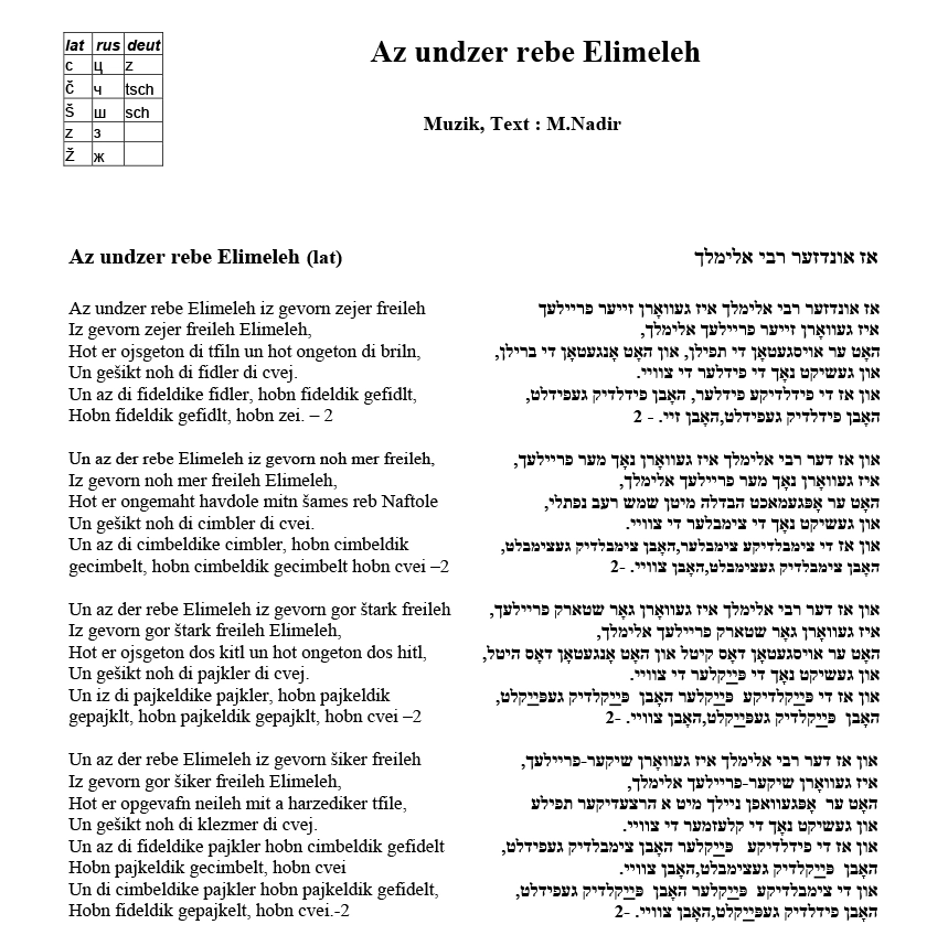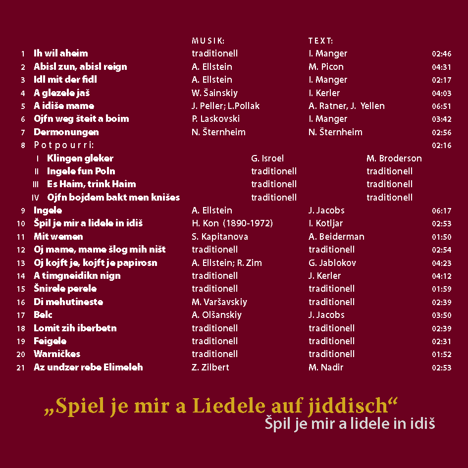 Booklet: Noten und Liedtexte (Jiddisch + lateinische Umschrift)